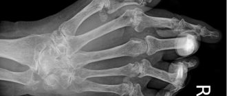 - присутствует ограничение объёма движений в суставах